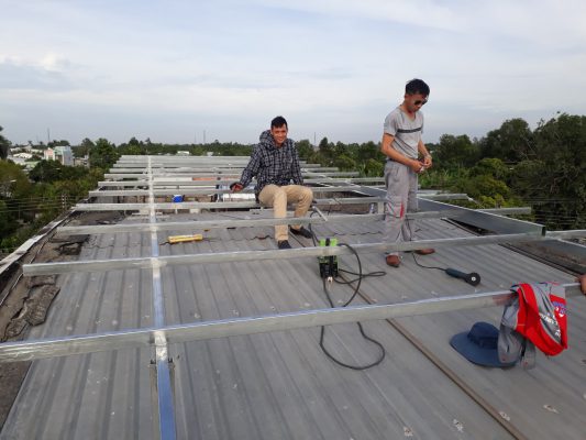 Khoan trực tiếp lên mái bê tông (6mm), hàn chân giá trụ đỡ đối với những nhà mái bê tông