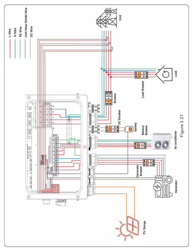 - Hỗ trợ tối đa 10 tổ máy vận hành song song – Khuyến nghị sử dụng tủ phân phối Solis khi kết nối > 6 tổ máy